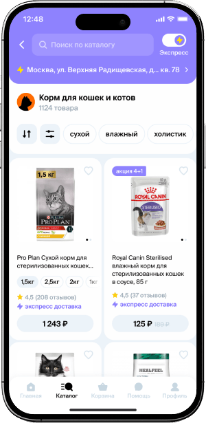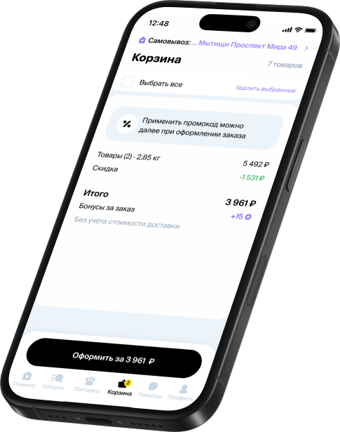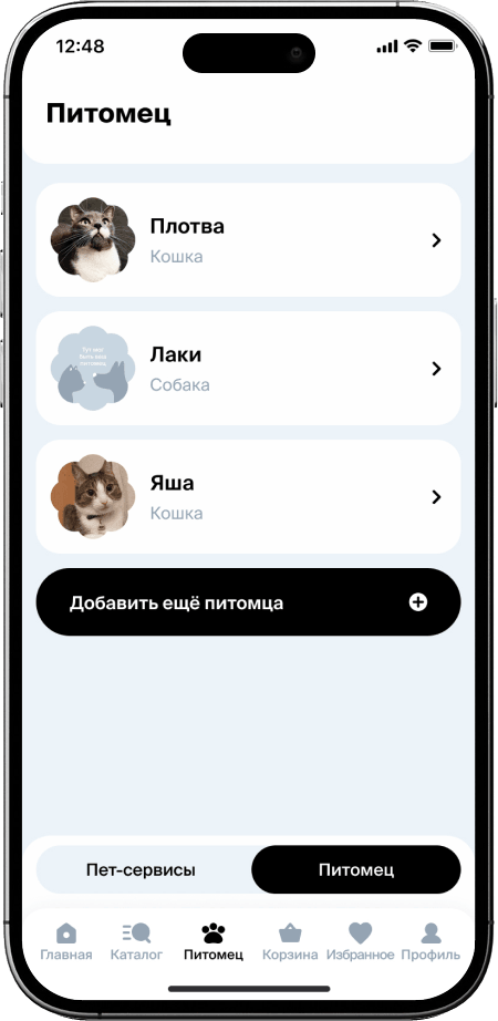 Мы разрабатываем и сопровождаем мобильное приложение, в котором реализованы ключевые функции — от личного кабинета питомца до гибкой системы оплаты