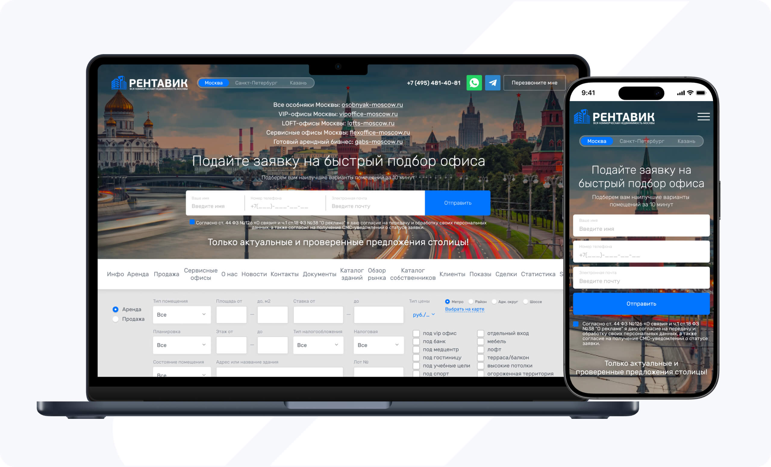 Корпоративный сайт агентства «Рентавик» - современный портал для торговли недвижимостью.