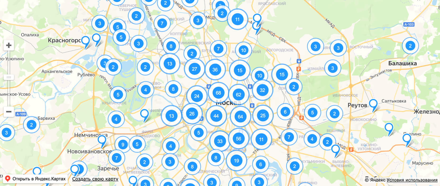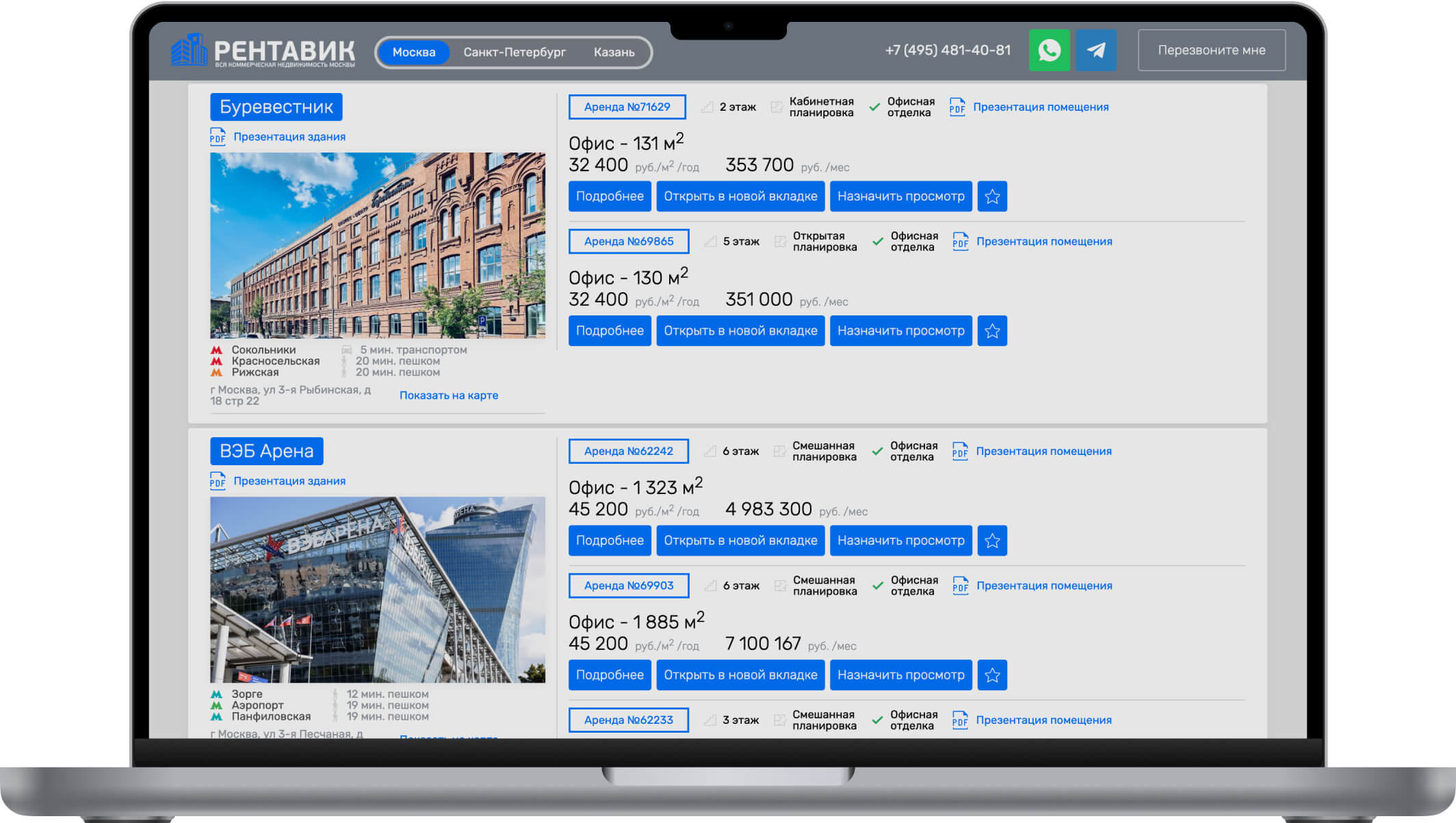 Глубокая система настроек фильтра позволяет сотрудникам быстро и точно подобрать подходящее клиенту помещение