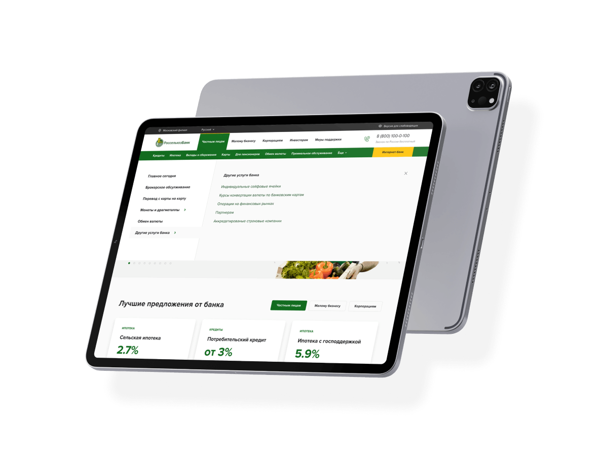 Для Россельхозбанка мы разработали интуитивно понятный интерфейс с удобной навигацией, адаптированной