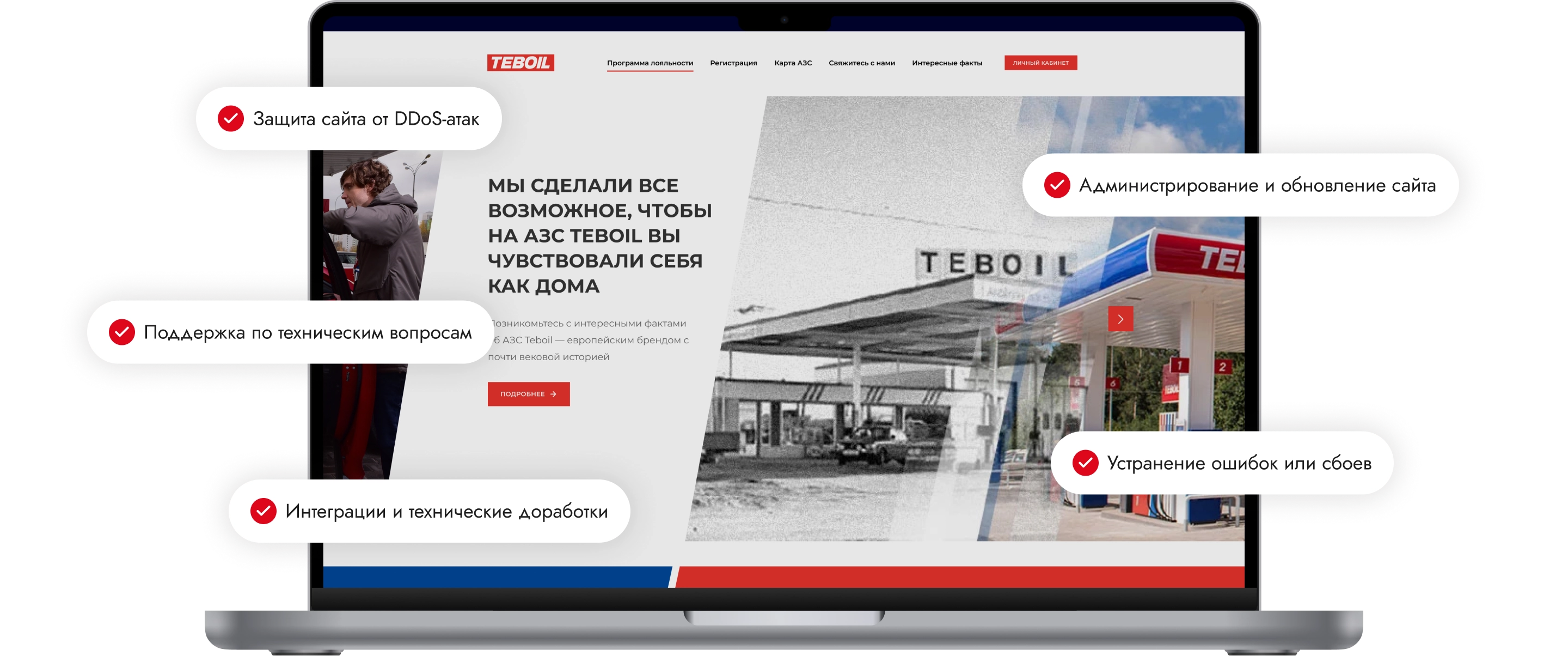 Обеспечиваем стабильную работу, быстро реагируем на технические проблемы, обновляем контент и защищаем от угроз