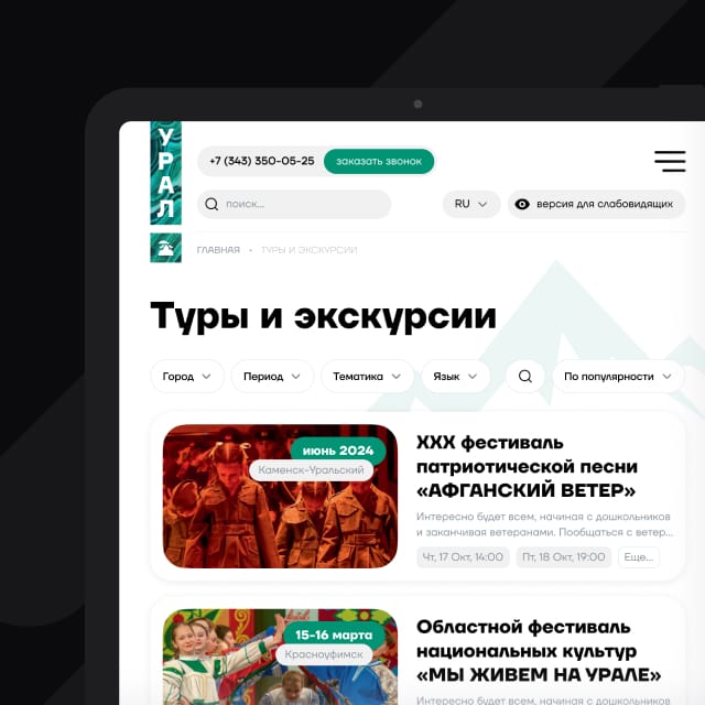 Разработан сайт для привлечения туристов на Урал за счёт улучшения визуальной привлекательности, удобства навигации и адаптации под мобильные устройства.